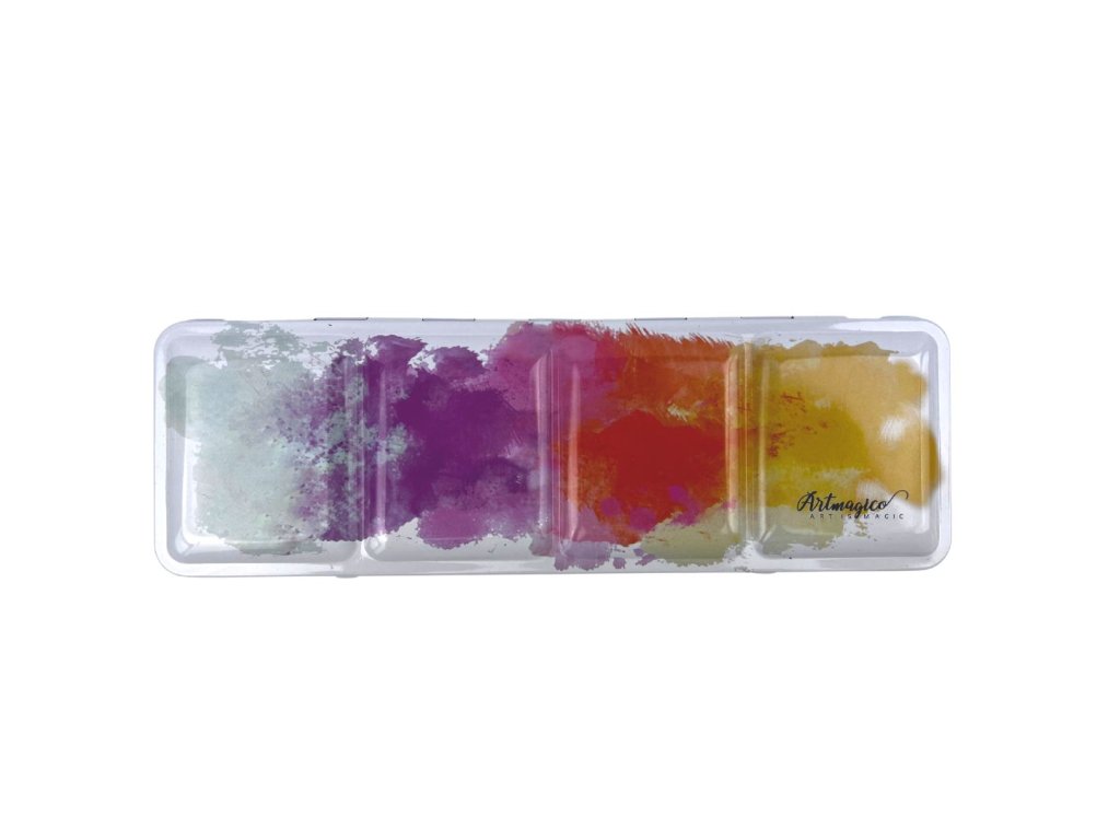 Akvarelové barvy Artmagico Professional Water colours s perleťovými odstíny Naše paleta obsahuje 24 intenzivních a vysoce pigmentovaných barev s nádhernými třpytivými odlesky Baleno v půl pánvičkách s označením barevného...
