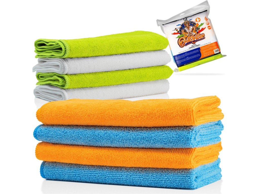 Mikrovláknové utěrky v balení po 8 kusech. Jsou vhodné na práce v interiéru, na stírání vosku nebo leštících past a další jakékoliv práce na voze v exteriéru nebo interiéru automobilu.